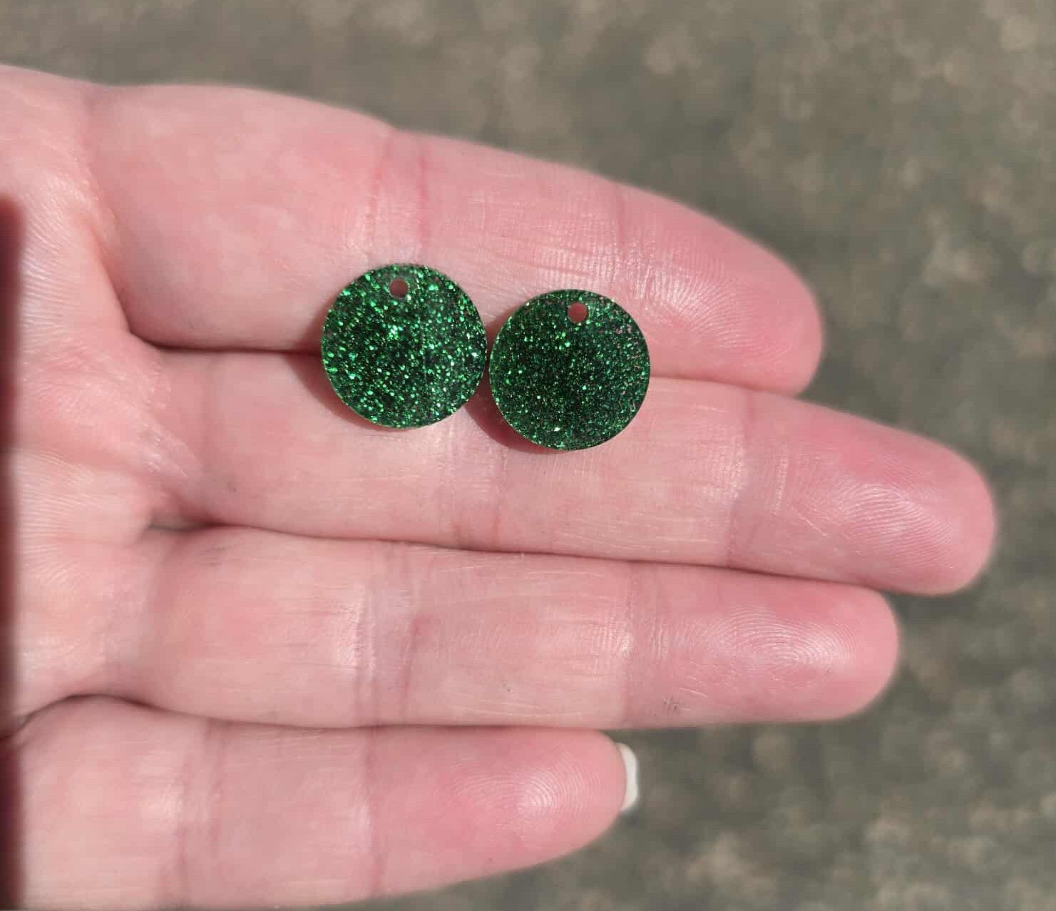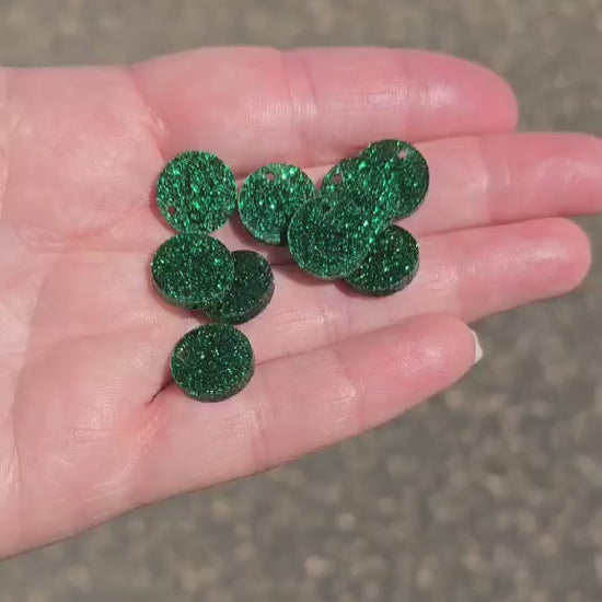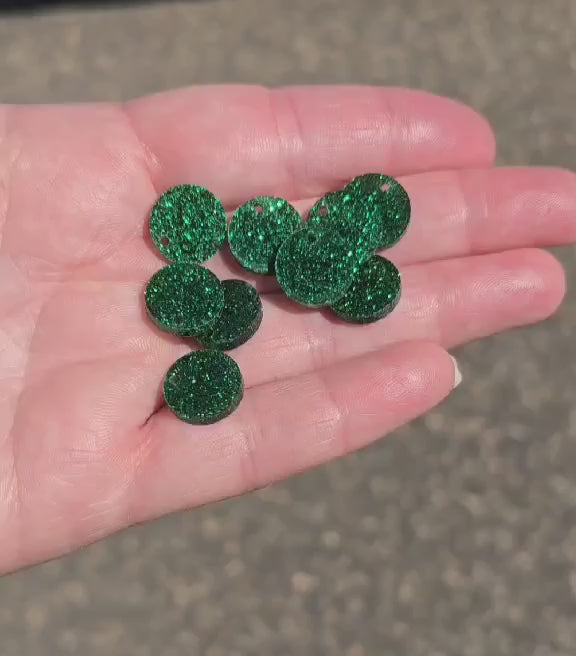 BULK!! NEW STYLE Green Round Acrylic Glitter Toppers 14mm pk 100
